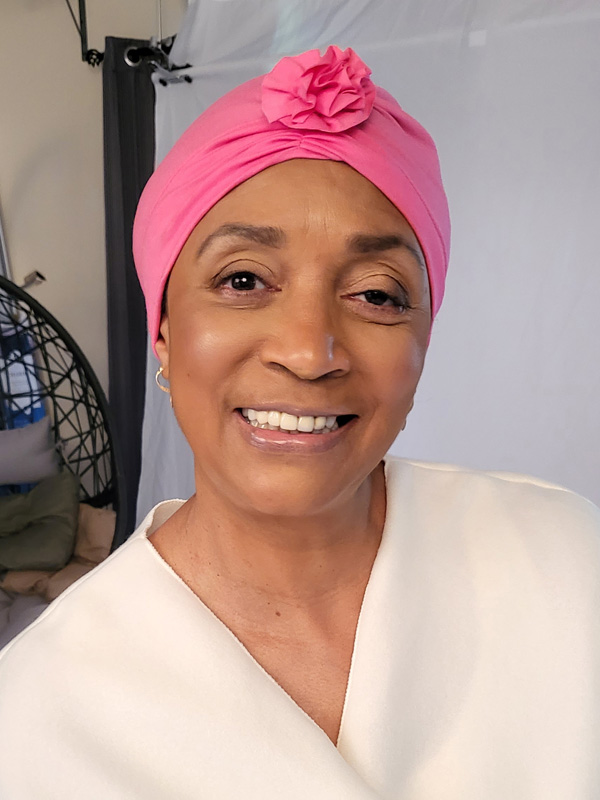 I use models of all ages and backgrounds. Cancer doesn’t discriminate and one person’s journey and treatment is different from someone else’s. I schedule a professional photographer, a studio space and the most important…a makeup/hair artist! As the models sit and have their make-up done before the photo shoot, they tell their stories and the lessons they’ve learned. Hair, nails, brows, lashes — they learned how to improvise during their illness, but they all maintain the importance of keeping a sense of style. As one woman said, it actually helps in the recovery process — if you feel you look good, it can help you feel better. And then we top it off with my line of clothing and these women come alive. The photos always speak for themselves.