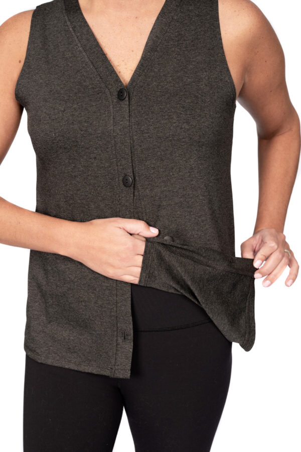 Charcoal Gray Super Soft Post Mastectomy Camisole with Inner Drain Pockets