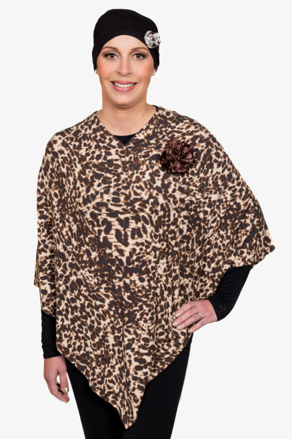 Leopard Print Poncho with matching Black Head Wrap with Leopard Print rosette.